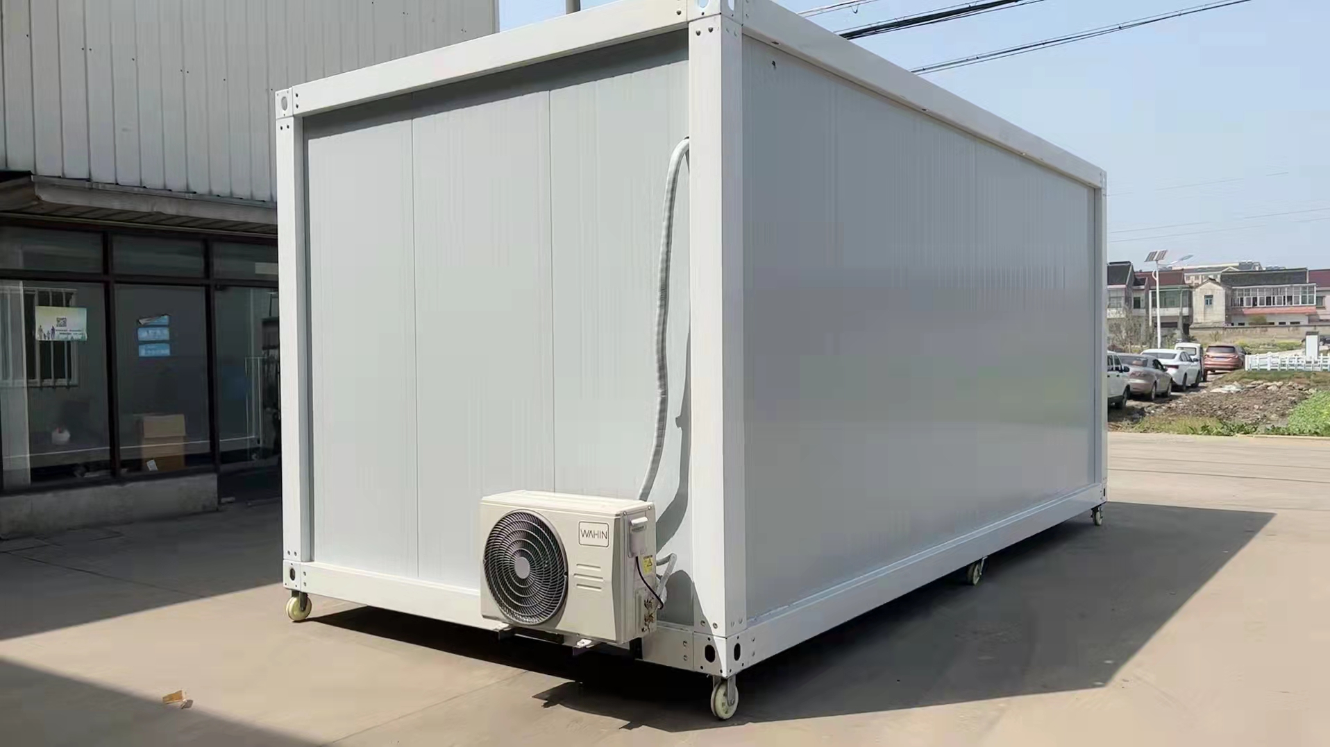 A. Large space: Our standard outside size is 6x3x2.85 meters. The internal space of the unit is 5.83x2.875x2.6 meters. This is larger than most shipping containers which are only 2.4x6x2.35 meters. B. Luxurious decoration: The steel structure is hidden inside the walls, the electric cables are hidden inside the ceiling, and there is also plastic corner hemming.